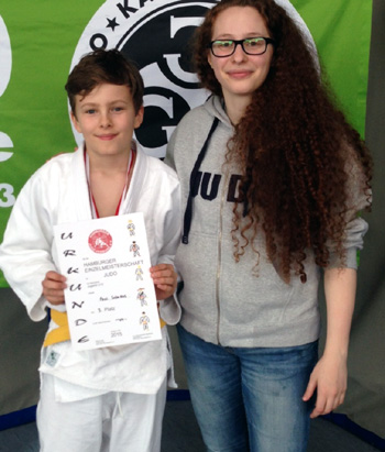 Mit dem Besten zum Schluss, folgte unser Wettkämpfer Paul. Wohl am längsten gewartet, schien Paul den Tag dann doch eher schnell beenden zu wollen. Der erste Kampf ein Freilos, gewann Paul seinen zweiten Kampf ganz nach dem Motto "Hab' mal schnell etwas zu erledigen", mit Ippon. Der dritte Kampf verlief etwas unglücklich, der vierte jedoch endete mit einem wunderschön ausgeführten O-Soto-Otoshi, was ihm somit auf den 3.Platz der Hamburger Einzelmeisterschaft der U12 brachte. Herzlichen Glückwunsch!