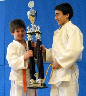 Im gemischten Pool mit Julia, Piet, Marco und Elefterios (Lefti) ging es heiß her, nicht das sich alle um eine Frau schlugen, nein, so lösen Judoka keine Probleme, es gab ja auch keine, außer: alle wollten auch einen Pokal, den bekam unbesiegt Marko, Lefti durfte den Silberpokal mit nach Hause nehmen und Bronze war für Julia und Piet bei den bis 33 kg-Startern.