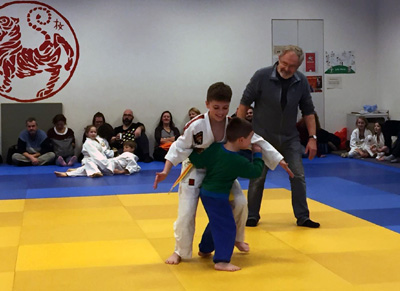 Sonderpreise gab es für besonders gekonnte Techniken, so erhielt Sabrina für einen „o-soto-gari“ einen Sonderpokal, Gregor für einen „ko-uchi-gari“ eine Ehrenplakette und Philip für seinen „ura-nage“ einen wertvollen zweiteiligen Sonderpokal, der mit der Spende von Barbara U. möglich wurde, danke.