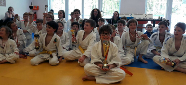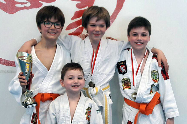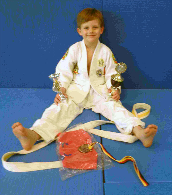 Ani, Zwillingsbruder Lorenz und Markus hatten jeder 2 Siege und erhielten eine Goldmedaille, nein, nicht eine zum Teilen, jeder bekam eine, und dann auch noch eine Riesengroße. So groß war dann auch die Freude. Silbe erhielt Nikolaos, er hat dafür am meisten gestrahlt. Er bekam dann von Sandra noch einen Sonderpreis in Form eines Shirts mit Judo-Motiv.